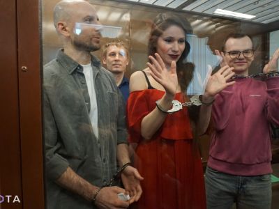 В ожидании судьи Натальи Борисенковой все – и подсудимые, и слушатели – стояли, молча глядя друг на друга. Фаворская, заметив в первом ряду коллегу из другого издания, радостно улыбнулась и сложила руки в сердечко. Так она приветствовала знакомых журналистов и на избрании меры пресечения в марте 2024-го, и на первом, вначале еще открытом, заседании по существу в октябре того же года, но впервые показывала этот ставший персонально для нее "запрещенным" знак в наручниках. Вскоре Фаворская достала припрятанное между папками с бумагами бумажное же, в яркую розово-белую полоску, ведерко с карамельным попкорном и громко сказала: "Ребят, я бы с вами поделилась попкорном, но, к сожалению, не могу передать. Это единственно верная еда у нас на сегодняшнем заседании, потому что она подходит к ситуации в принципе, к происходящему в стране". Она зачерпнула полную горсть попкорна и, моментально проглотив его, отметила: "Ждем саспенс!" "Сэкономим на билетах, в кино ходить не надо!" – поддержал ее Артем Кригер. Антонина рассмеялась и хотела еще что-то добавить, но тут в зал вошла судья Борисенкова. Оглашение приговора все фигуранты слушали уже серьезно.