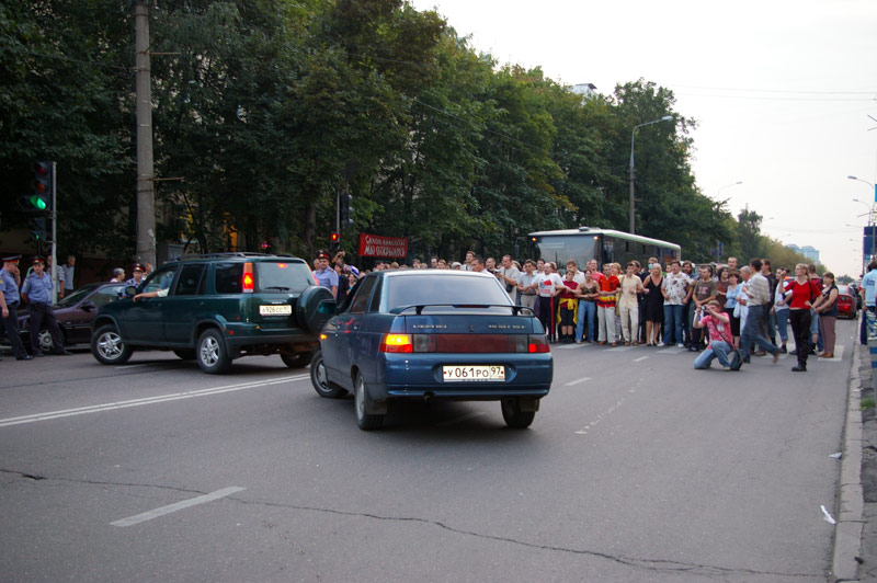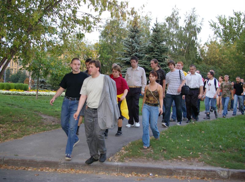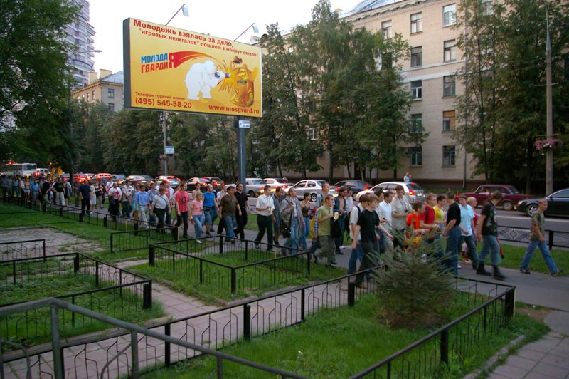 После этого участники акции колонной двинулись к метро, для того, чтобы исключить возможные провокации как со стороны милиции, так и со стороны службы безопасности компании "Дон-строй". Во время движения активисты и местные жители скандировали: "Россия без Путина! Москва без Лужкова!", "долой "Дон-строй"!", "долой уплотниловку!".