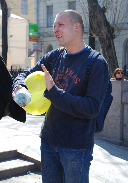 Более 10 человек, преимущественно школьники и сдуденты, держали растяжку: "ЕГЭ? Спасибо, нет!", а также скандировали под звуки свистков и трещеток лозунги: "ЕГЭ не пройдет", "ЕГЭ - это г...". В руках участники держали разноцветные надувные шары, на которых было написано: "Сдавайте сами свой ЕГЭ" и другие лозунги против Единого государственного экзамена.